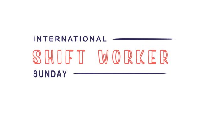 International shift worker sunday text animation. Suitable for global work related branding, multicultural companies, and diversity campaigns emphasizing 247 coverage.