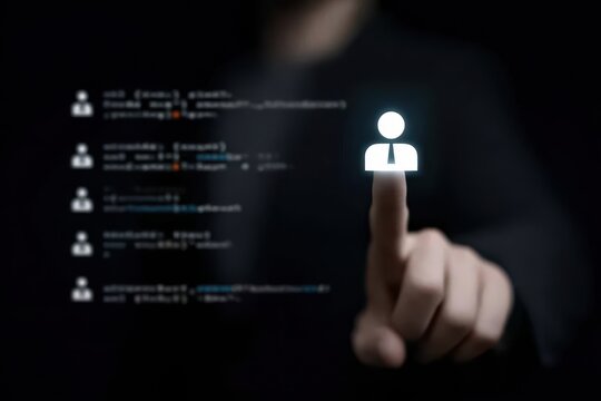 Human Resources HR management concept. Businessman use laptop with virtual people analysis icons for recruitment process to work efficiently and achieve sustainable business success. team building.