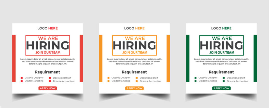 We are hiring job vacancy social media post or square web banner template