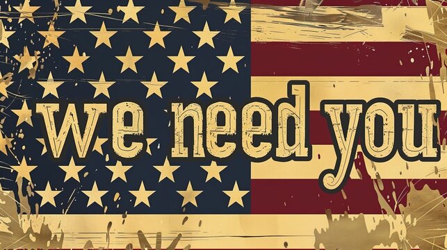 A vintage-style American flag background with the text "We need you" overlaid on it