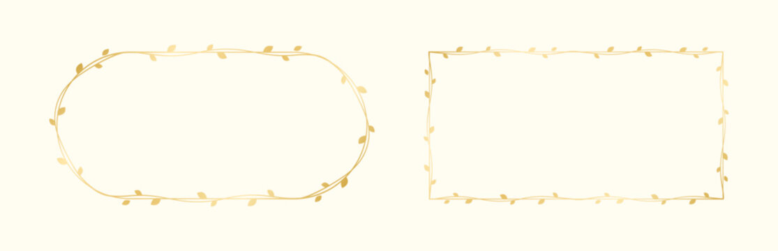 Gold vine frame wedding elegant wreath set. Golden frame with botanical design. Vector isolated illustration.