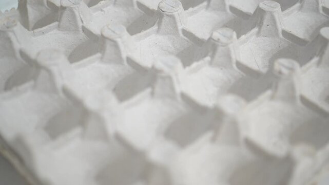 Empty egg carton made of recycled paper pulp, sustainable packaging background