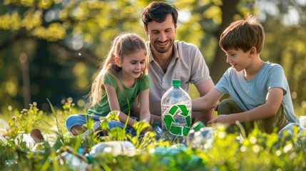 Eco-friendly teamwork: Join a family effort in recycling paper, plastic, and glass, fostering environmental awareness and waste reduction