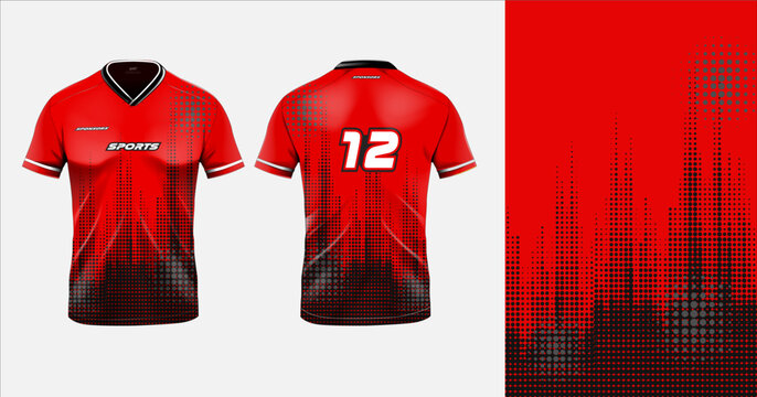Black and red sport jersey uniform textile design for soccer, football, volleyball, badminton club. Sublimation printing fabric vector design.