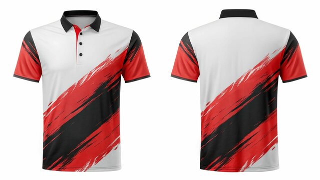 Mockup Red and black abstract design polo shirt, front and back views, showcasing a sporty, modern style.