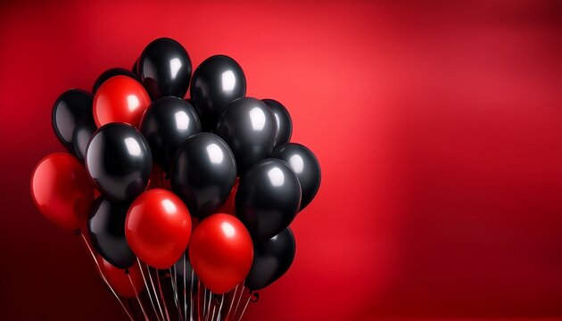 3d rendering. Floating big red balloons on black background. horror Halloween object concept