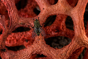Latticed stinkhorn, clathrus ruber, basket stinkhorn, or red cage fungus in the family Phallaceae
