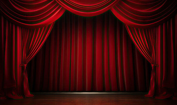 Magic Theater Stage with Red Curtains. Generative ai