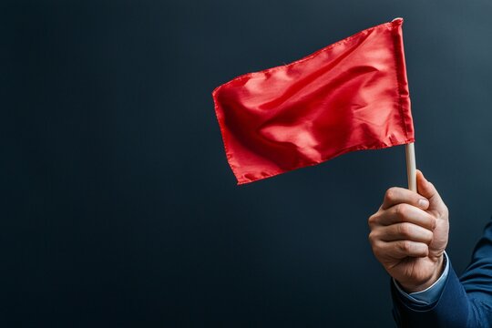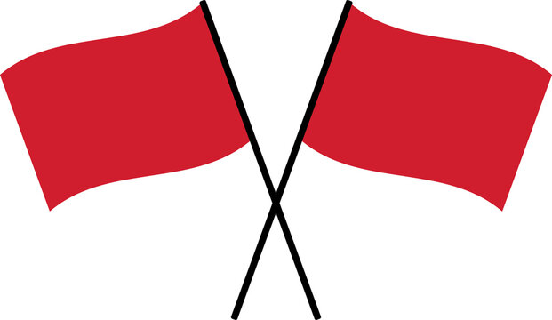 Vibrant red flag waving on a pole, symbolizing warning, danger, or alert. Isolated on a white background.
