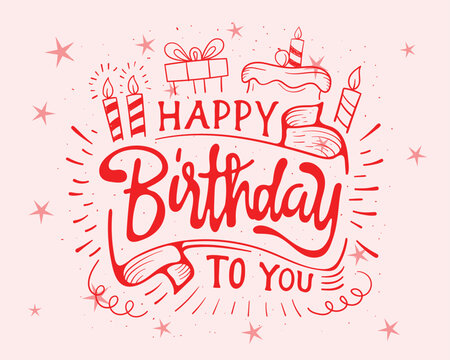 Happy Birthday wish design, Birthday icons vector Pink background red fonts