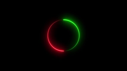 Round neon green and red frame against the black background of following .A circular neon frame made of moving neon lights. Empty frame electric power round border glowing, burning flame sign.