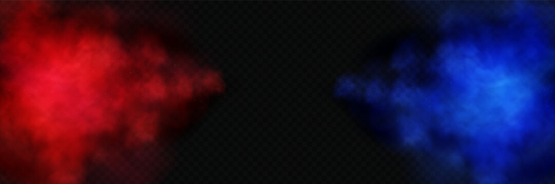 Red and blue neon smoke on dark background, realistic fog overlay for dramatic sport versus concept, perfect for MMA or boxing fight poster design.