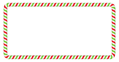 Festive christmas border frame with star cookies candy canes pine branches and red berries on a neutral background