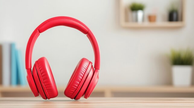 Stylish red headphones on a teal background, showcasing modern design and vibrant color.
