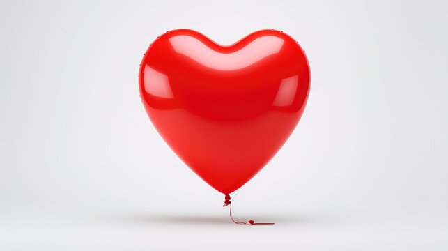 Celebrating Saint Valentine's Day with heart shaped red foil air balloon. Gift for loved woman on special occasion with romantic symbols, Women`s day. Close up, copy space, background, isolated.