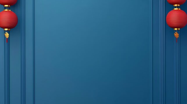 Red Lanterns Hang From Branch With Red Berries Against Red Background