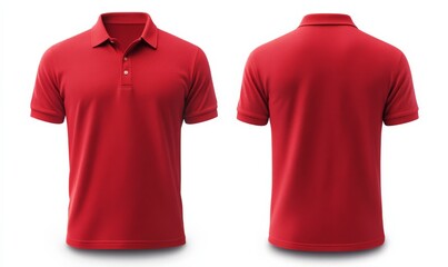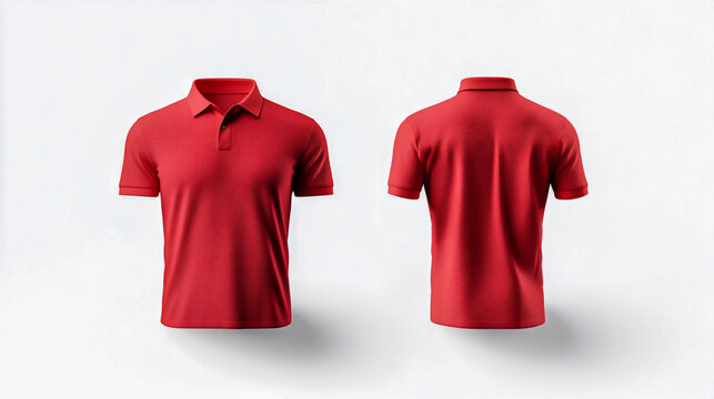 Blank red male polo t-shirt, template for your design mockup. Front and back view.
