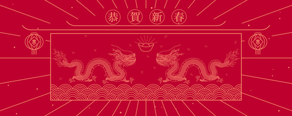 Chinese translation: Congratulations on the Chinese New Year. Chinese New Year red poster