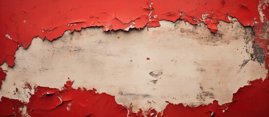 An aged, textured red poster was forcefully torn off a street wall, leaving behind a ripped paper texture in the copy space image.