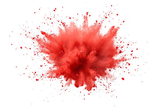 Explosion of red powder against a white background. cloud with color. Bright dust explodes. Color Holi. Generative AI