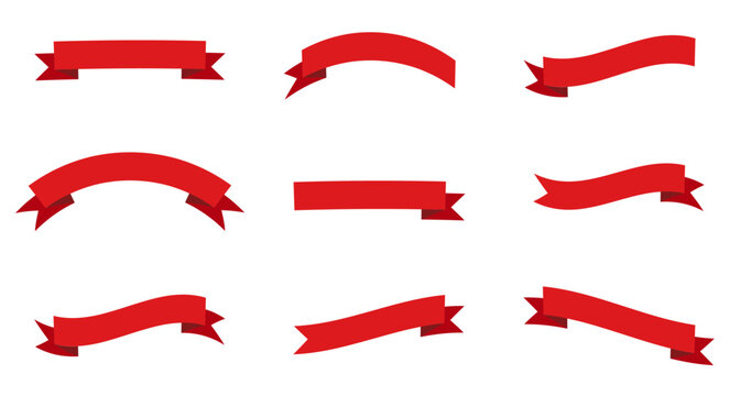 Set of red ribbons isolated on white.