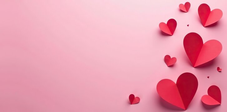 Dynamic splash of liquid hearts in pink and red shades on light pink background