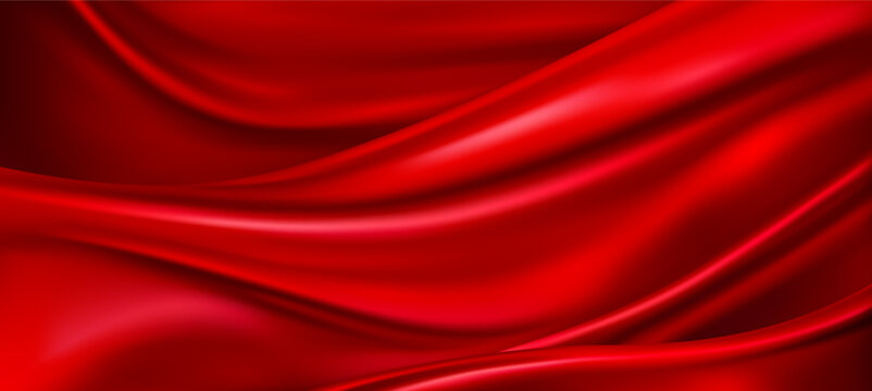 Red satin or silk fabric textile as background.Abstract vector background luxury red silk or satin texture.Red cloth or liquid wave or wavy folds of grunge silk. Red luxurious background. Vector EPS10