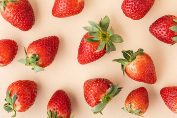 Fresh red strawberries with mints overhead view