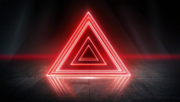 Close-up of a illuminated red triangle on a sheet of paper, with a blurred keyboard in the background, creating a dramatic, tech-inspired look.