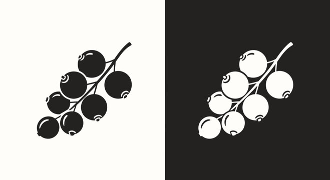 Black and White Illustration of a Currant Branch.