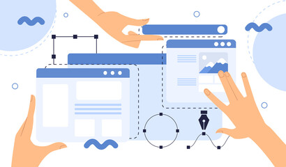 Web page Concept. Use for web page, banner, infographics. Flat illustration editable line. Ui UX design hands