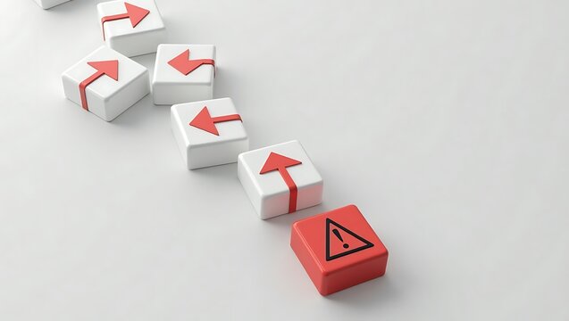 Red Arrow Cubes Leading to a Warning Symbol Representing Risk, Strategy, and Decision-Making