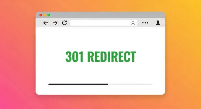 A browser window displays the text 301 redirect with a loading bar underneath, indicating a web page redirection