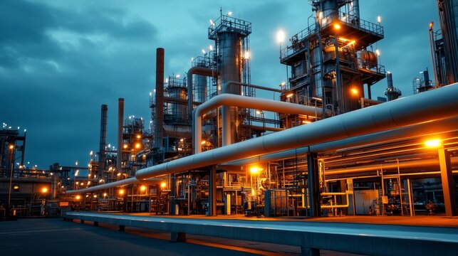 Industrial facility night scene oil refinery urban landscape steel structures industrial environment dramatic viewpoint city concept