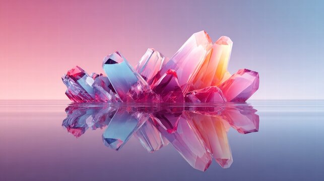 This is a stunning image of colorful crystals reflected in calm water, radiating beauty.