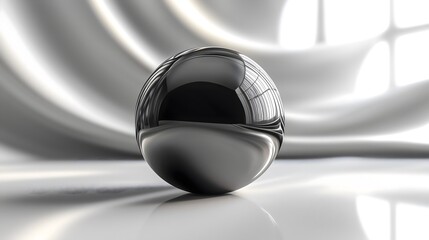 Monochromatic sphere rendering with reflective surfaces and soft shadows on a textured backdrop