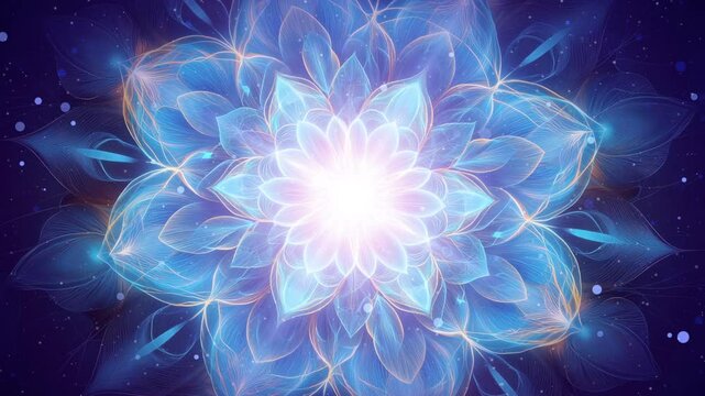 Sacred Mandala Lotus – Spiritual Flower Rotation in Bright Neon Colors with Cosmic Rays and Hypnotic Patterns for Esoteric Meditation