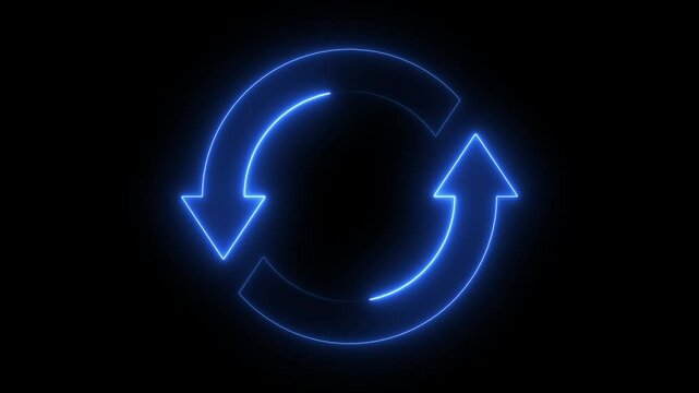Neon line refresh arrow icon on black background. Abstract beautiful neon refresh and recycle icon animation background