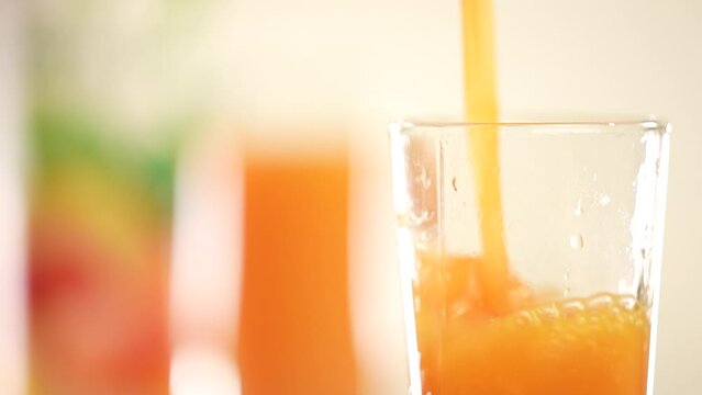 Refreshing fruit smoothies displayed in vibrant colors on a white background with fresh fruit accents