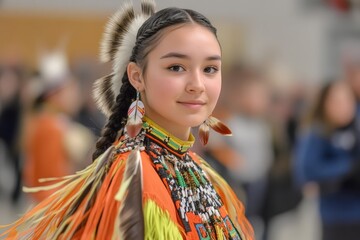 A Native American powwow regalia adorned with feathers, beads, and fringe, representing cultural identity and tradition, Generative AI