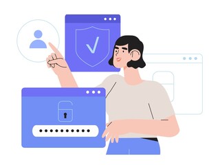 Online registration and sign up concept. People signing up or login to online account with user interface. Secure login and password. Vector illustration landing template for UI, mobile app, web