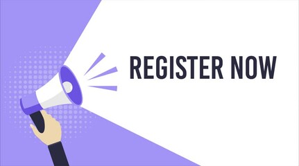 Megaphone label with register now. Megaphone banner. Web design. Vector stock illustration