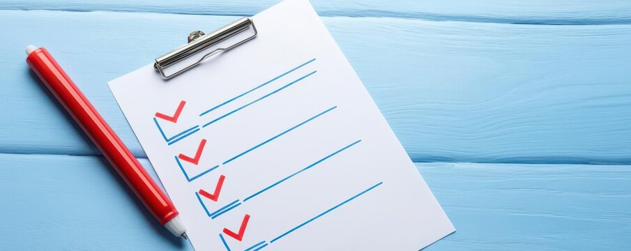 Tax regulation book and compliance checklist with checked box on white surface, symbolizing legal and financial adherence in business and accounting processes