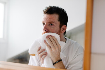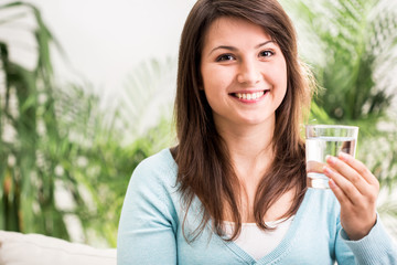 Woman drinking water urgently to rehydrate after suffering from heat exhaustion