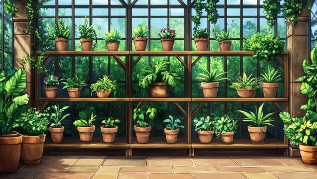 Discover the rejuvenating ambiance of a botanical sanctuary filled with potted plants