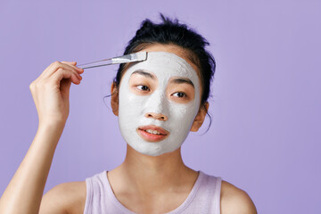Professional female beautician making procedure for laser resurfacing of aged female client face skin on modern equipment in clinic of aesthetic cosmetology
