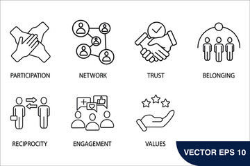 Social capital icons set . Social capital pack symbol vector elements for infographic web