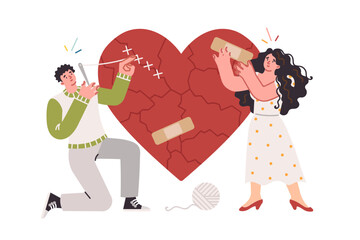 A Symbolic Representation of Love's Imperfections Featuring a Cracked Red Heart with Bandages Emphasizing Healing and Emotional Resilience in Relationships