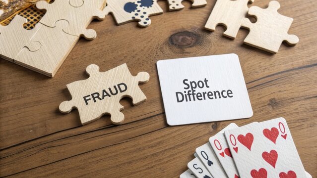 Game of Spot the Difference Featuring Fraud Puzzle Pieces and Cards