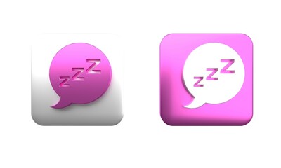 Colorful Speech bubble with snoring icon isolated on white background. Concept of sleeping, insomnia, alarm clock app, deep sleep, awakening. Square button. 3D render illustration